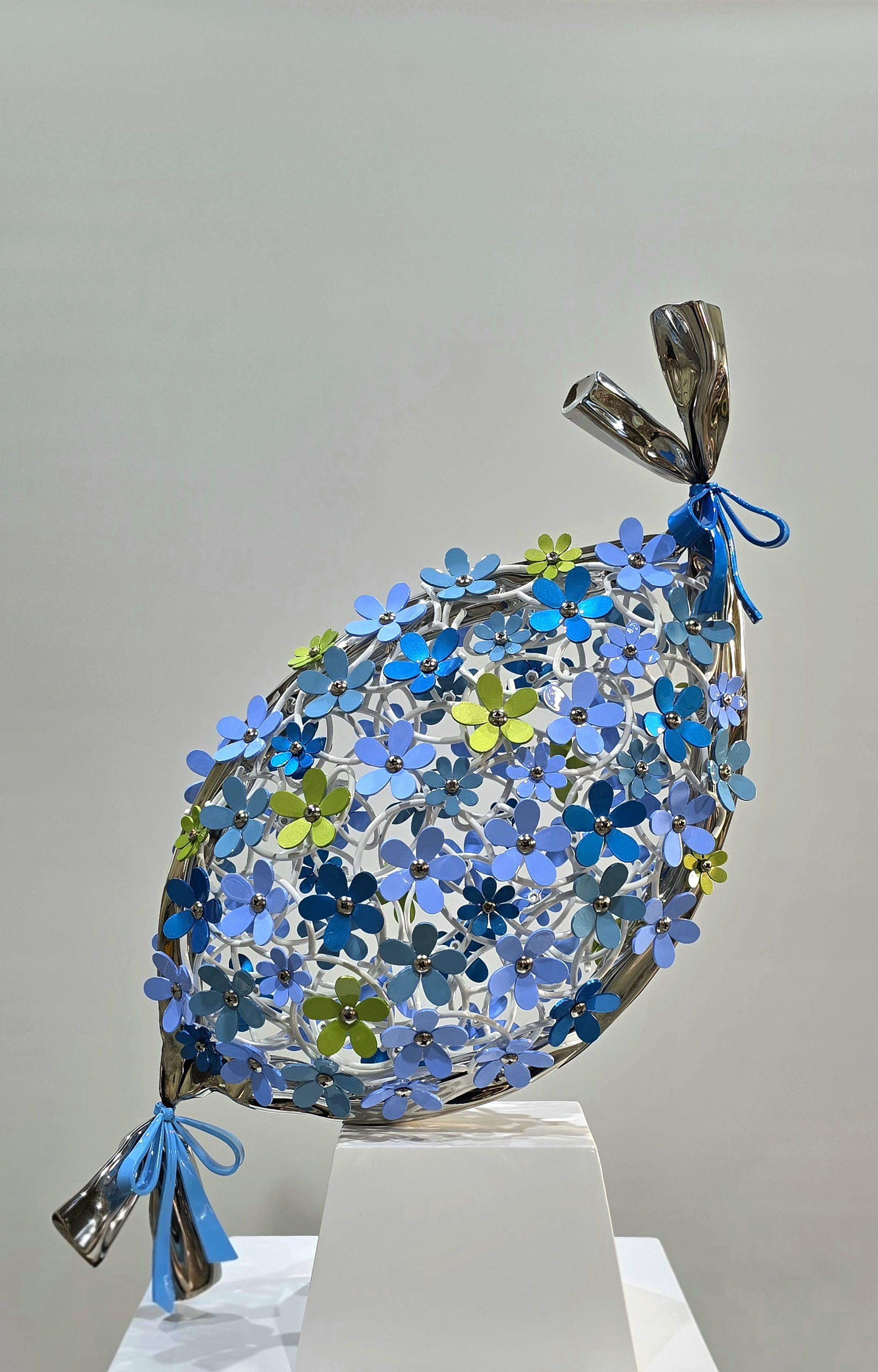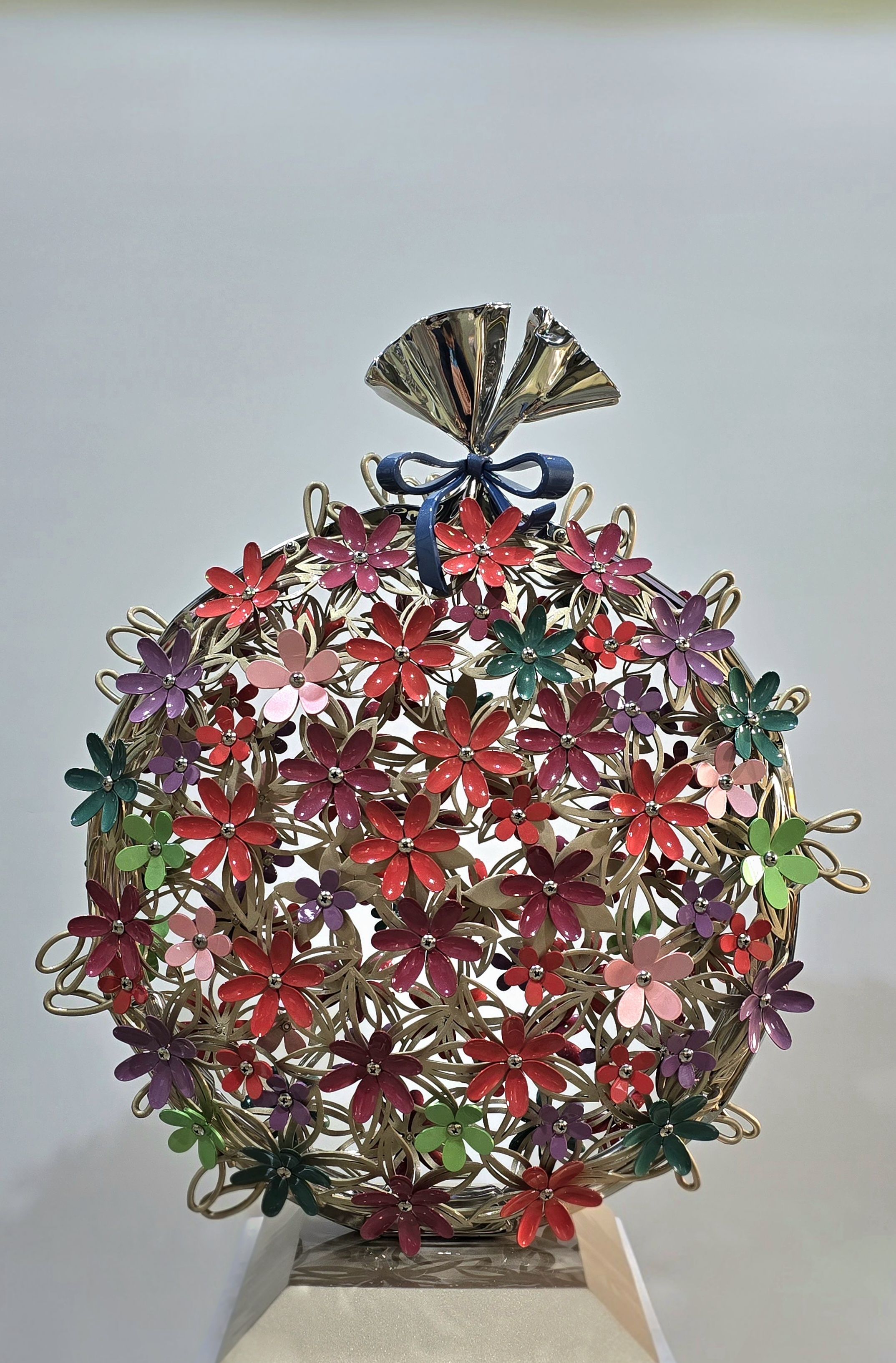 차가운 스테인리스 캔버스 위에는 골드, 핑크, 블루의 생명력이 넘실댄다. 2021년 우리가 소장했던 그 '매듭'이 긴 겨울을 지나 비로소 화려한 '꽃'으로 만개한 것이다.